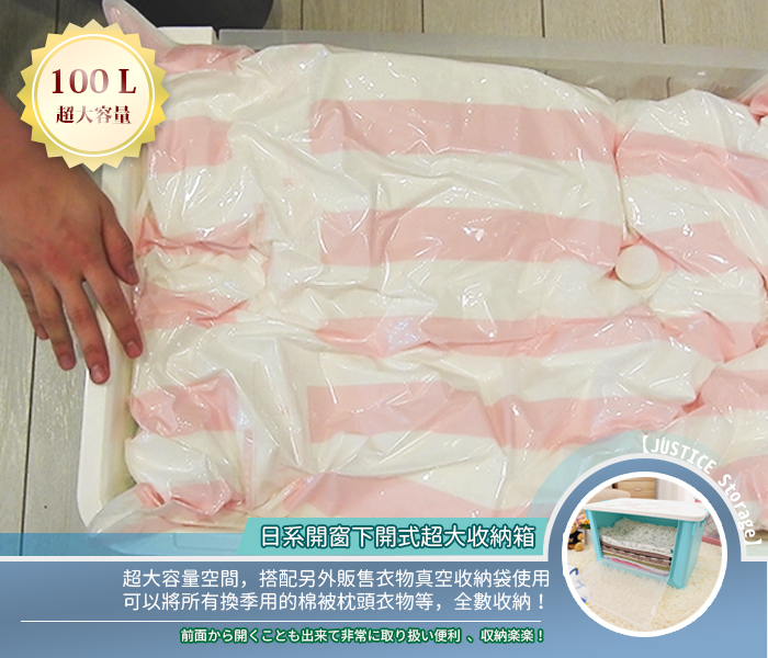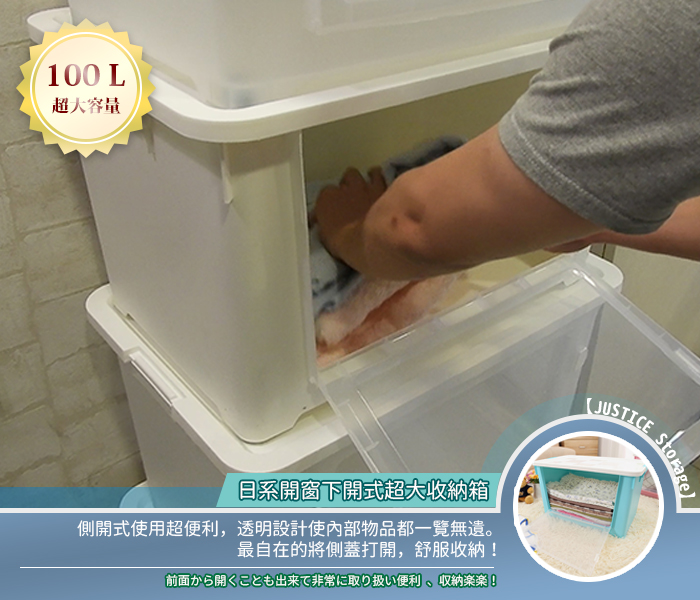 【禮物】【JUSTICE HOME】日系超強大下開式收納箱100L-哪裡買便宜?的CP值蠻高的,感覺還不賴,值得購買,在網路上買也很方便,最後決定買下來了