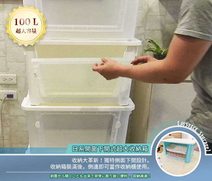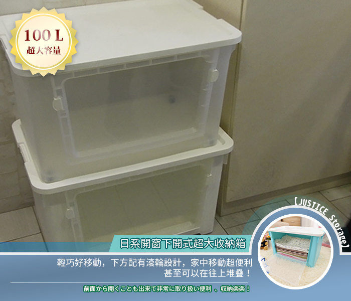 【禮物】【JUSTICE HOME】日系超強大下開式收納箱100L-哪裡買便宜? 用過之後感覺真的很不賴,比我上次買的好用喔!!大力推薦!!!